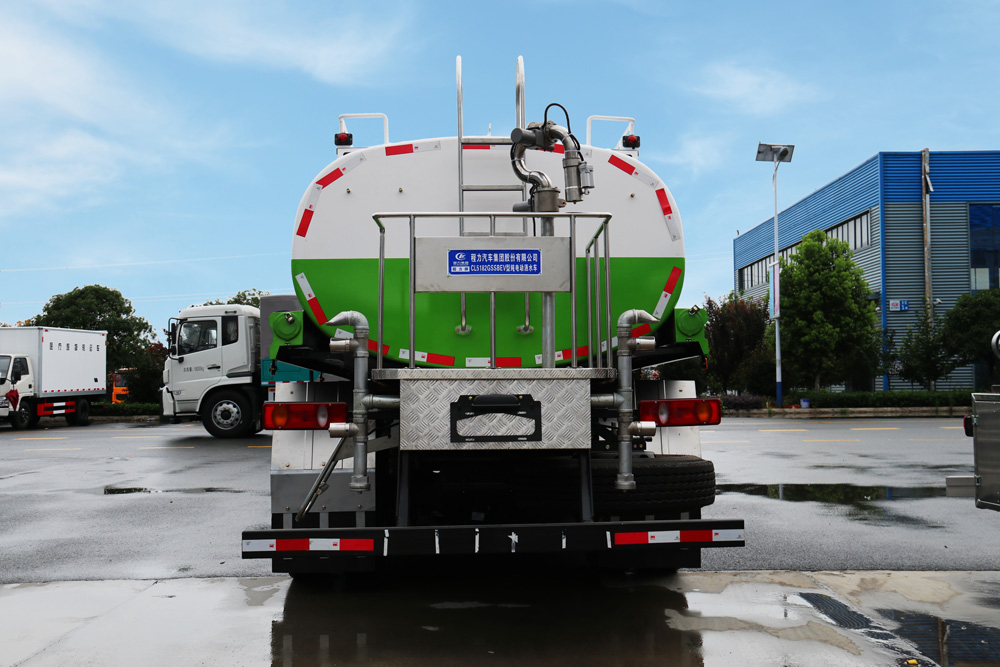 四、其他說明: 東風(fēng)天錦純電動灑水車是在純電動二類底盤的基礎(chǔ)上,加裝低壓沖洗、灑水系統(tǒng),由機械、液壓(氣路)、電器三部分合為一體的專用灑水作業(yè)車。采用自吸式雙級離心泵,效率高、灑水寬度大、水槍射程遠,低壓水泵由底盤變速器取力器通過傳動軸直接傳動。