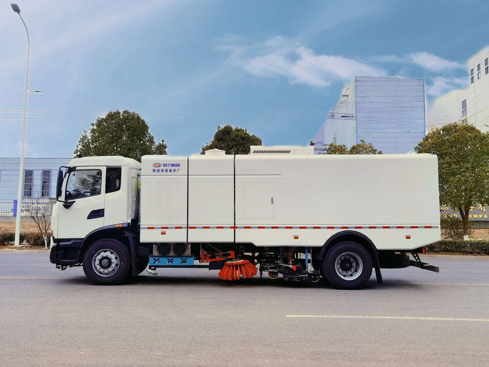 一、底盤配置: 采用東風天錦EQ1180GEVJ1車身,配置玉柴TZ370XS-LKM1101發動機160/218馬力,國六排放標準,軸距5300(mm),整備質量13.9噸,額定載質量3.97噸,五擋變速箱,帶動力轉向,帶原廠空調,該車采用東風天錦純電動二類底盤,并加裝上裝電機動機及其傳動裝置、垃圾箱、清水箱、 清掃裝置、降塵系統、吸嘴、低壓沖洗系統、高壓清洗系統、液壓系統、氣動系統、電氣系統 等部件改裝而成。電機、電控、油泵、馬達、關鍵控制元件等配套件均采用國際知名品牌。該車上黃牌,城區道路請注意限行標識。
