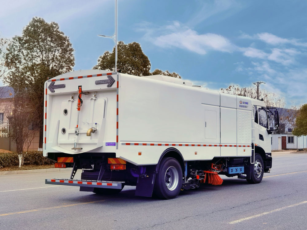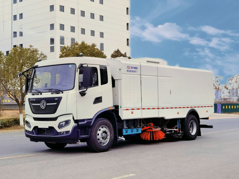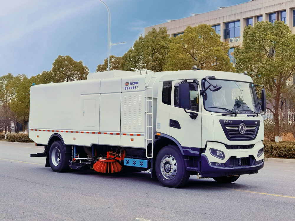 四、其他說明: 東風天錦純電動洗掃車是我公司研制開發的集掃路車和高壓清洗車功能于一體 的高效環衛車。整車動力強勁,結構先進,掃、吸、洗相結合,作業效果好。一次作業,三重 收獲,道路清掃、路面高壓清洗、垃圾污水收集一次完成,此洗掃功能解決了不可視垃圾清理 的作業難題,從源頭上遏制道路揚塵,還原路面本色。