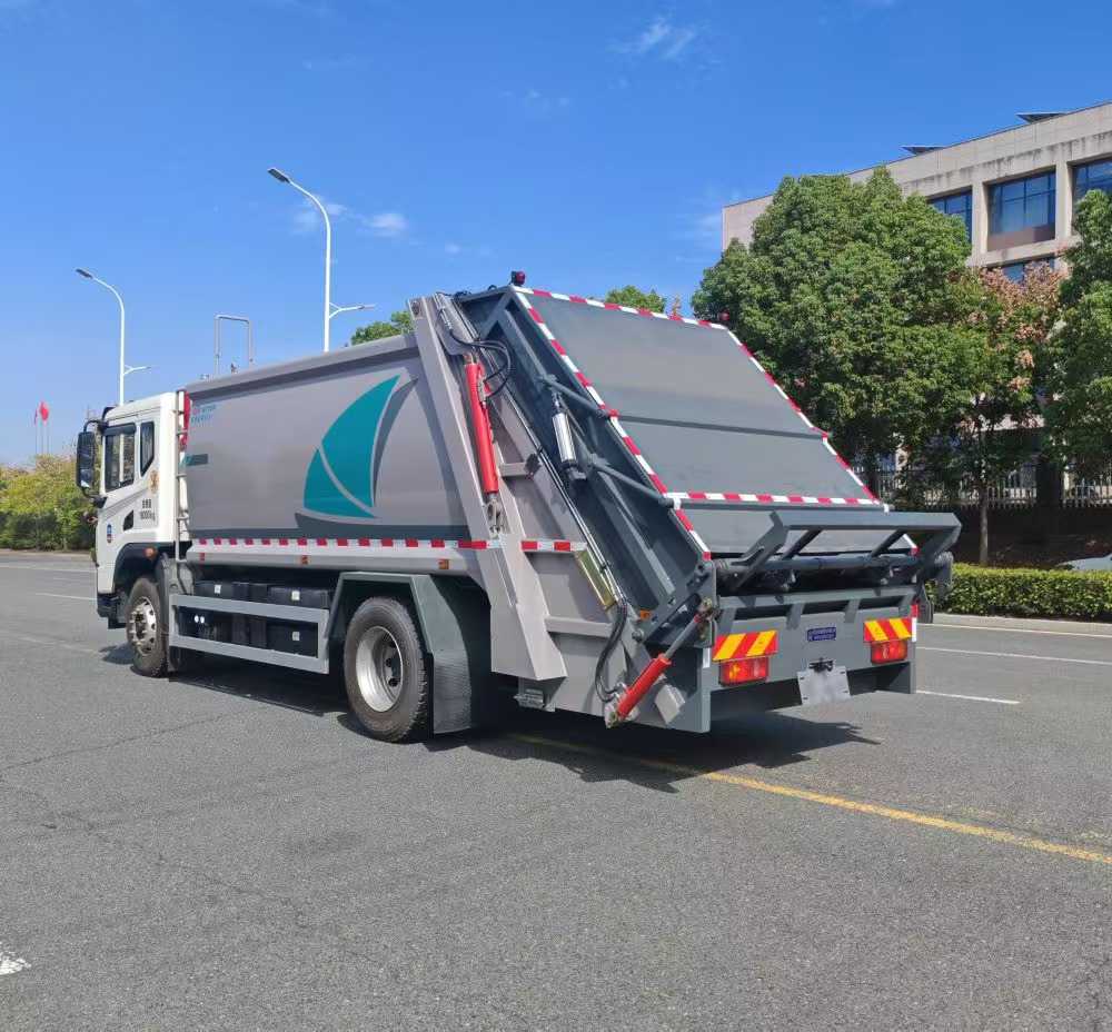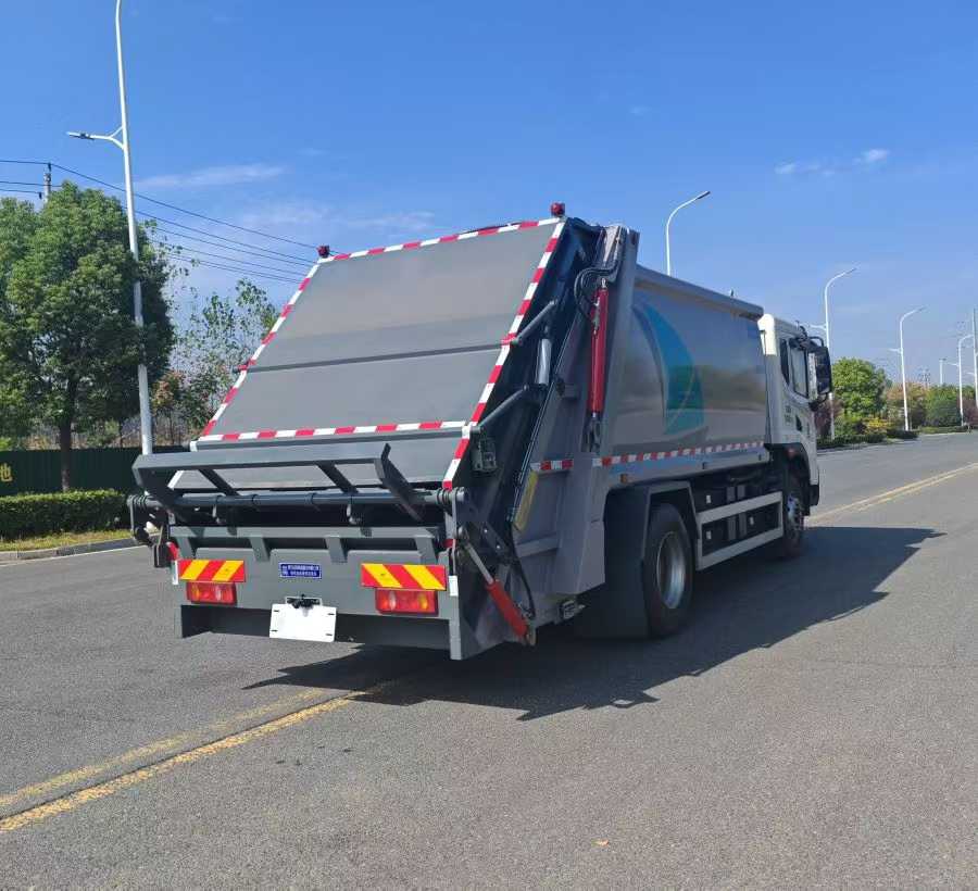 四、其他說明: 采用國內領先技術高強度的 U 形整體成型桁槽 ,作為垃圾推板的活動導軌 ,受壓能力強 ,抗變形 能力好。 污水分離 :采用導流式污水收集裝置 ,可將填料器與垃圾箱體之間因密封膠條失效而滲漏的污水引流至專用 污水收集箱中 ,有效防止因污水泄漏而造成的二次污染。 容積更大 :垃圾箱體采用弧形設計 ,美觀 ,結構性能強