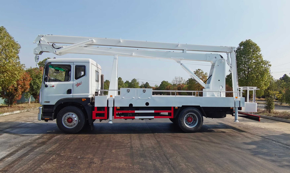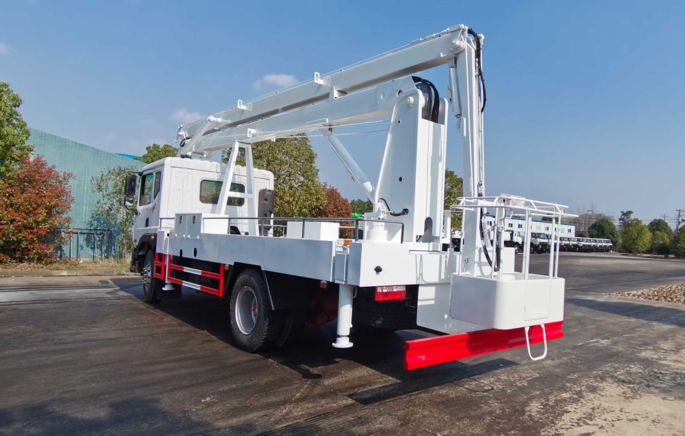 四、其他說明: 東風多利卡21米折臂高空作業車,折臂式結構使得車輛在狹小空間內也能靈活作業,可輕松到達一些直臂式高空作業車難以到達的位置,如建筑物的拐角、狹窄街道等。臂架的伸縮和回轉速度較快,能夠快速將作業人員和工具送到指定位置,提高了作業效率,減少了作業時間。