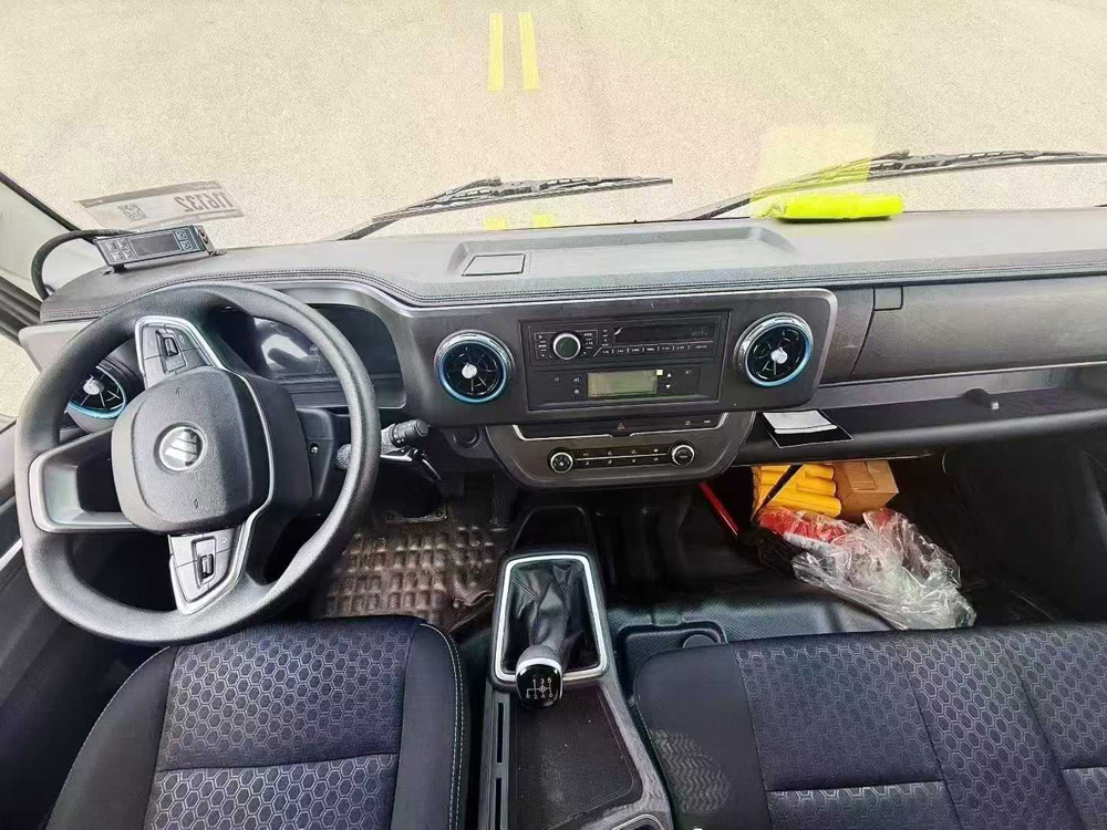 一、底盤配置:采用福田歐馬可 BJ1048V9JEA-FM3車身,配置玉柴F2.8NS6B156發動機156.4馬力,國六排放標準,軸距3360(mm),整備質量3.2噸,額定載質量1.095噸,五擋變速箱,帶動力轉向,帶原廠空調,貨廂頂部封閉,不可開啟.選裝導流罩;選裝排半駕駛室;選裝無側開門、雙側開門、單側開門貨箱風格,選裝后四鎖桿,五固定折頁的后部貨箱風格,選裝貨箱內部的肉掛和導軌結構.選裝后部三開門貨箱風格;選裝同等功率制冷機組,外觀形狀可不同.側面防護裝置連接方式該車上藍牌,城區道路不限行。
